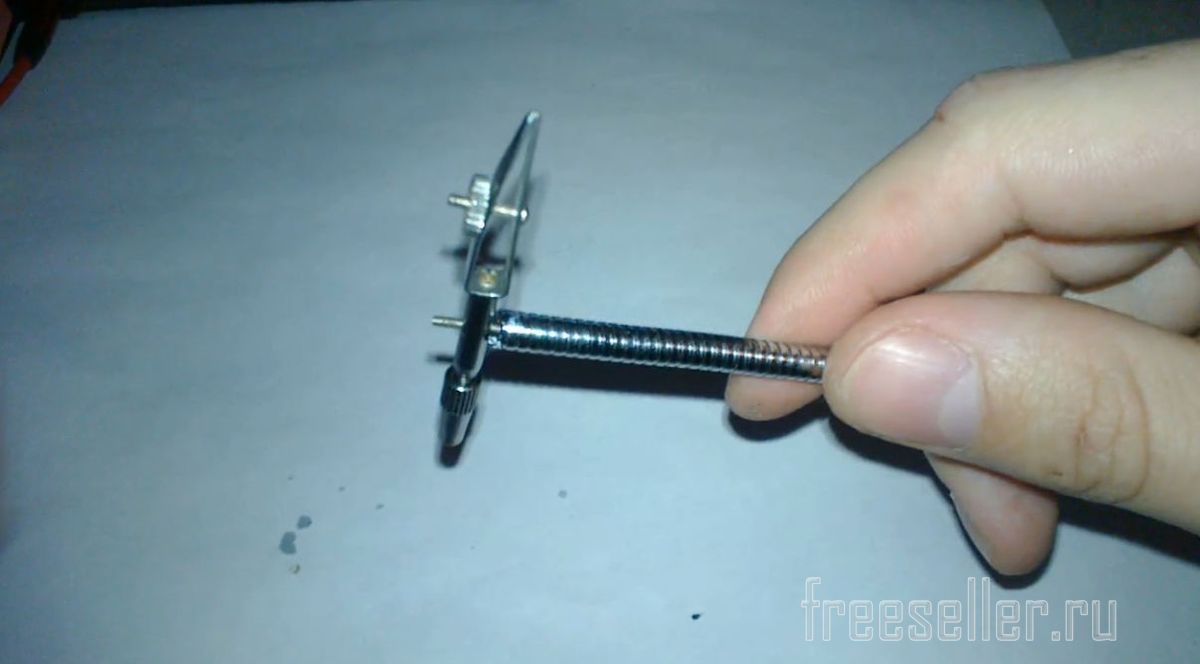 Фиксирующий болтик приклеиваем супер клеем во внутрь гибкой ножки(как раз туда входит). Клей не жалейте) Это будет универсальная ножка, которую можно будет настроить и применить под свои нужды. В моем случае, будет дополнительный фиксатор для проводка или лампочки и зажим(куда вставляется грифель) для проволоки припоя.