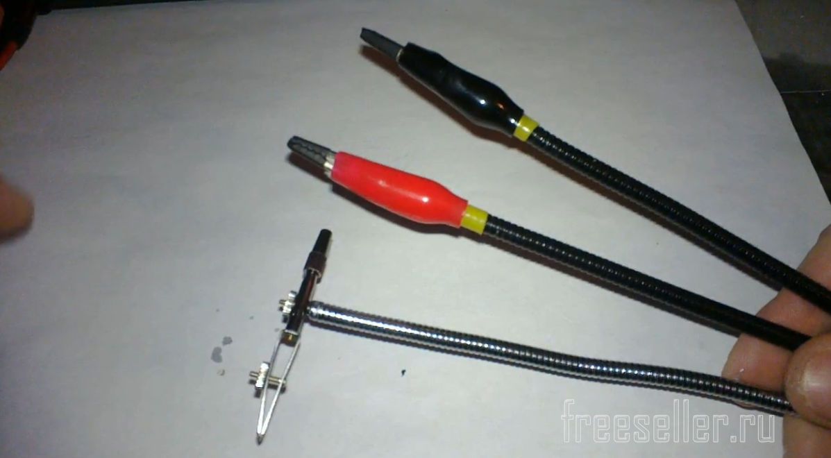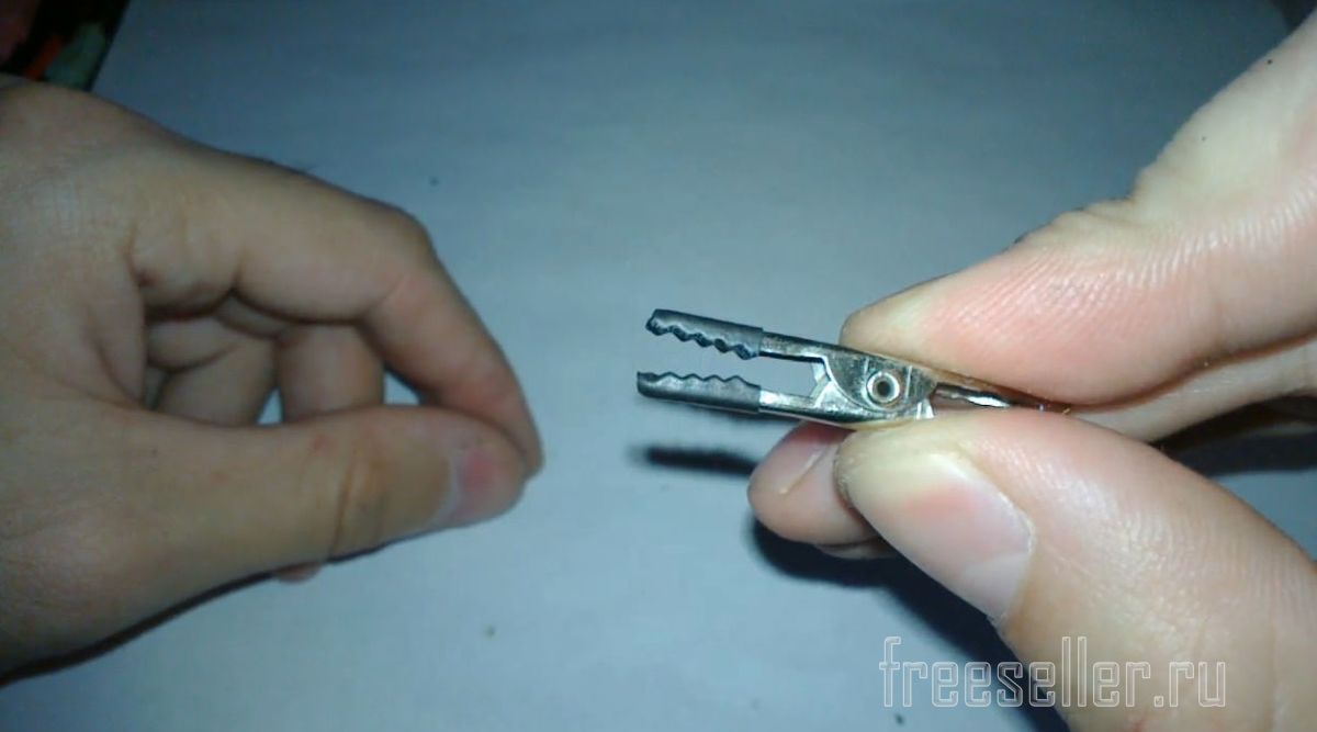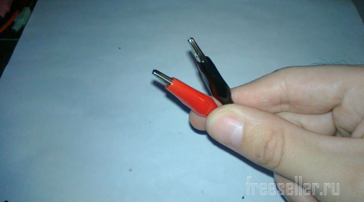Берем 2 крокодильчика и сажаем термоусадку 3 мм на зубцы, как показано на фото. Это для того, чтобы металлическими зубцами не повредить элементы на платах, обмотку проводов и не оставлять следов на предметах, которые будут фиксироваться крокодилами.
