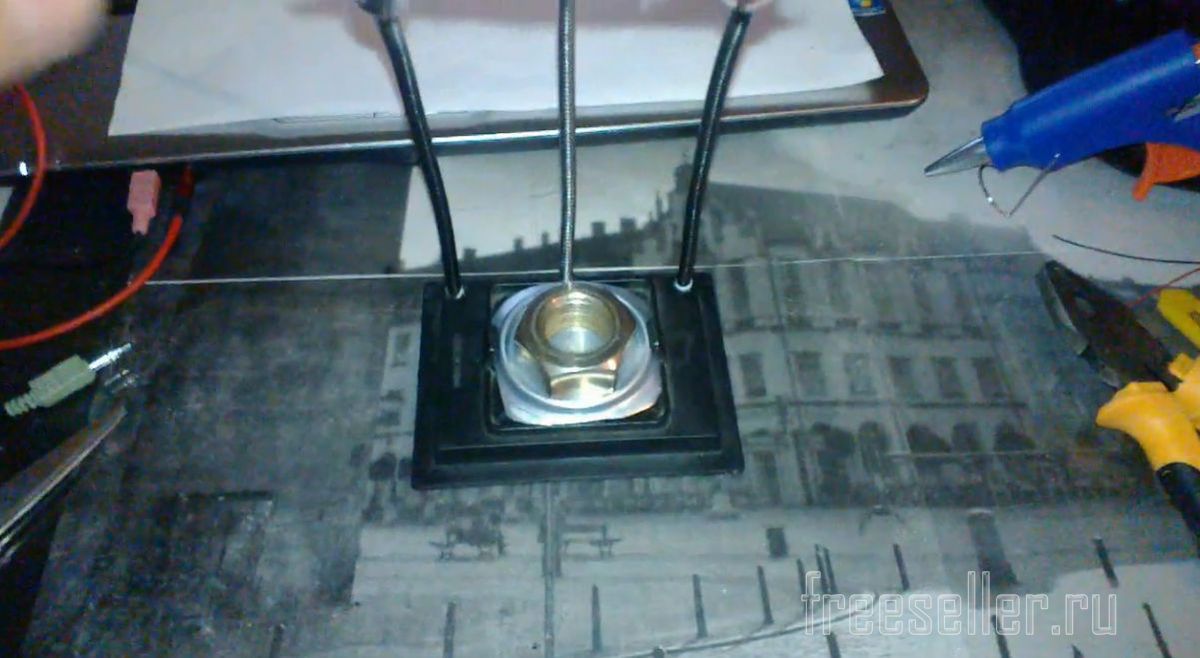Делаем в основании 3 отверстия под гибкие ножки.