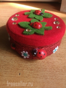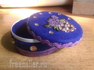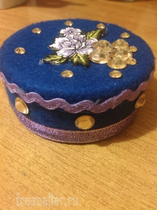 5. Далее декорируем шкатулки по своему вкусу, используя любой подручный материал. Все украшения фиксируем термоклеем ( он хорошо держится на фетре) главное не наносить очень много, что бы он не торчал.