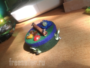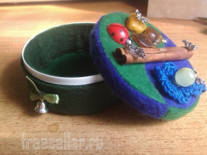 7. В качестве завершающего штриха при помощи циркуля выкраиваем на донышко подложку из фетра. Укладываем на дно.