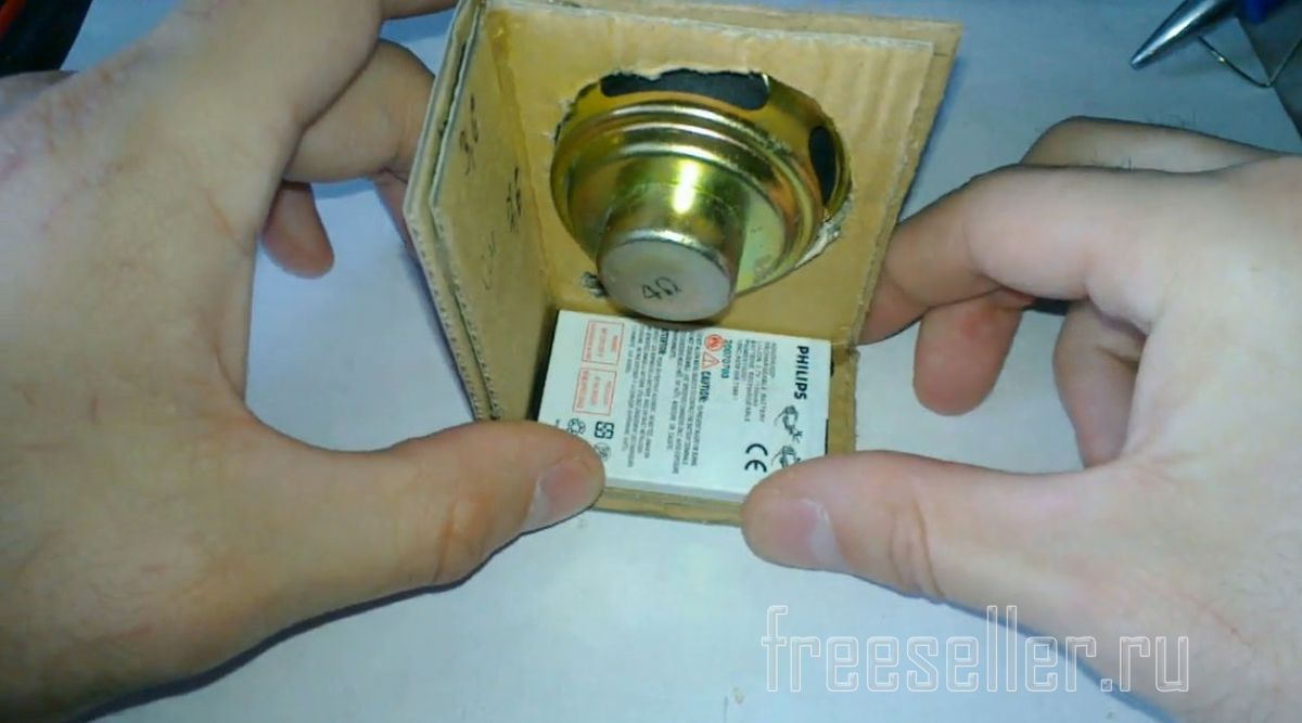 Вырезаем место под динамик, чтобы плотно сидел на месте.
