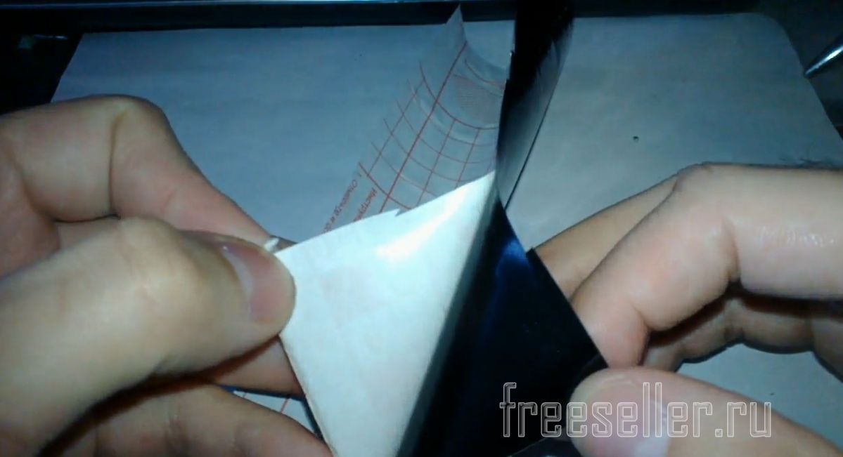 Берем декоративную пленку на клейкой основе(у меня осталась черная) и обклеиваем ей части корпуса.