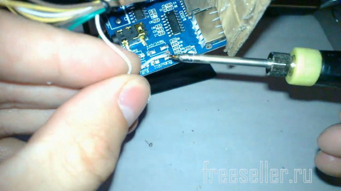 Теперь можно припаивать проводки от кнопок на плату плеера.