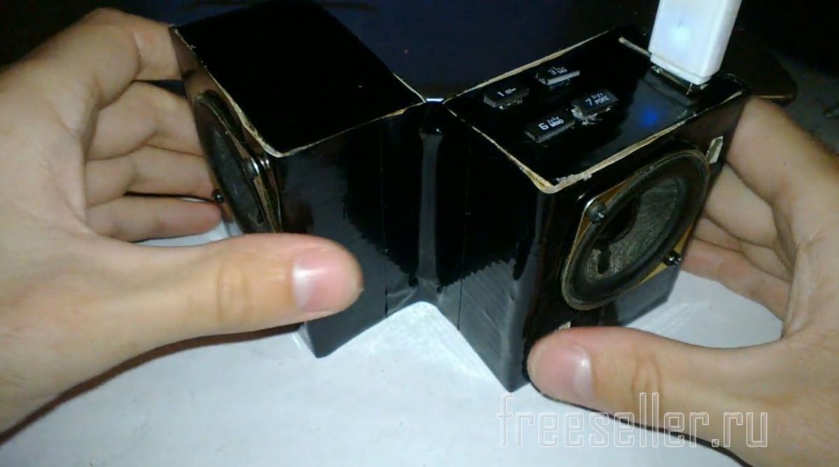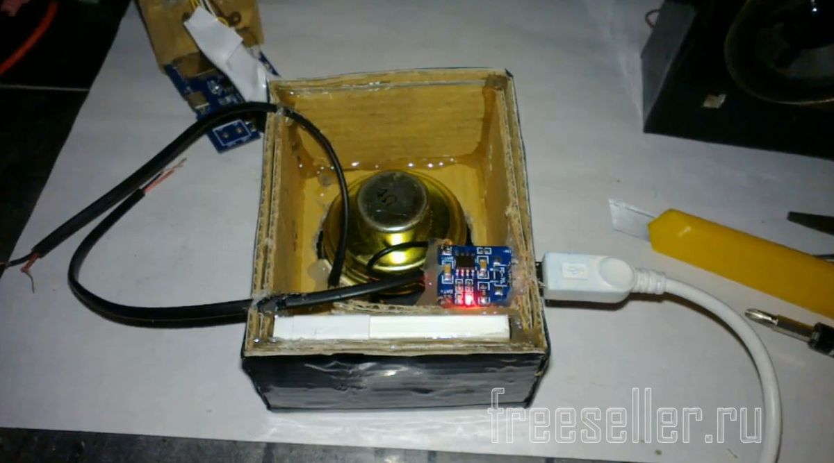 Прикручиваем динамики к корпусу саморезами и фиксируем саморезы с обратной стороны термоклеем.