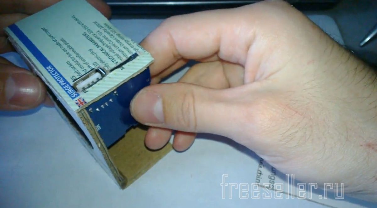 Вырезаем отверстия для USB и microSD разъемов на верхней части корпуса.