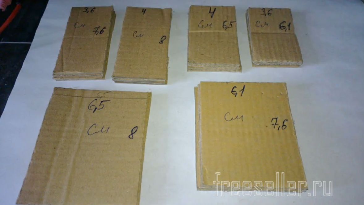 Нарезаем картон на парные куски, по 4шт каждого размера.