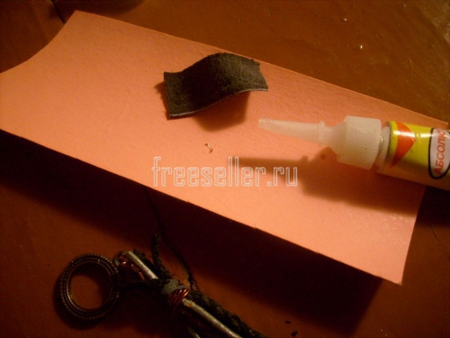 5. Из кожи вырезаем две полоски, чтобы заклеить проволоку.