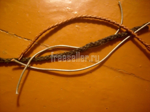 2. Нарезаем кожаные шнуры на фрагменты длиной в обхват запястья.