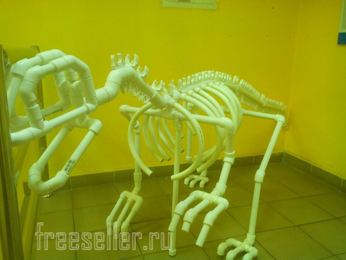 Скелет динозавра сделанный из полипропиленовых и металлопластиковых труб.