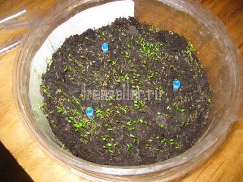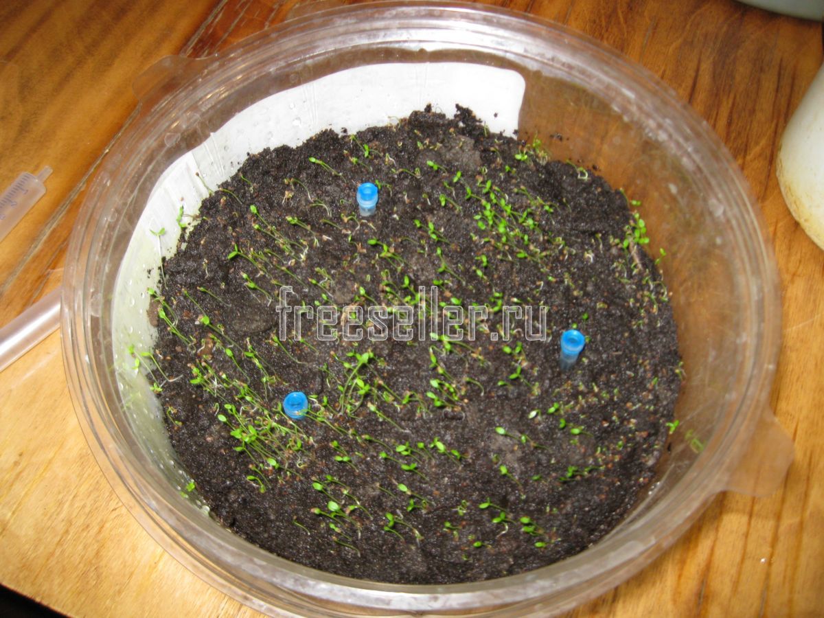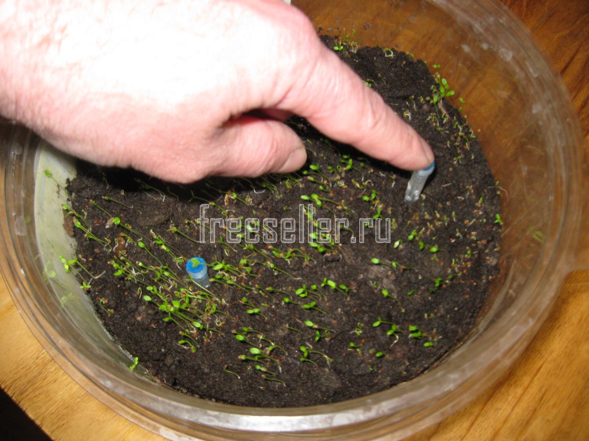 Теперь осталось аккуратно воткнуть их в землю емкости, где посеяна рассада.