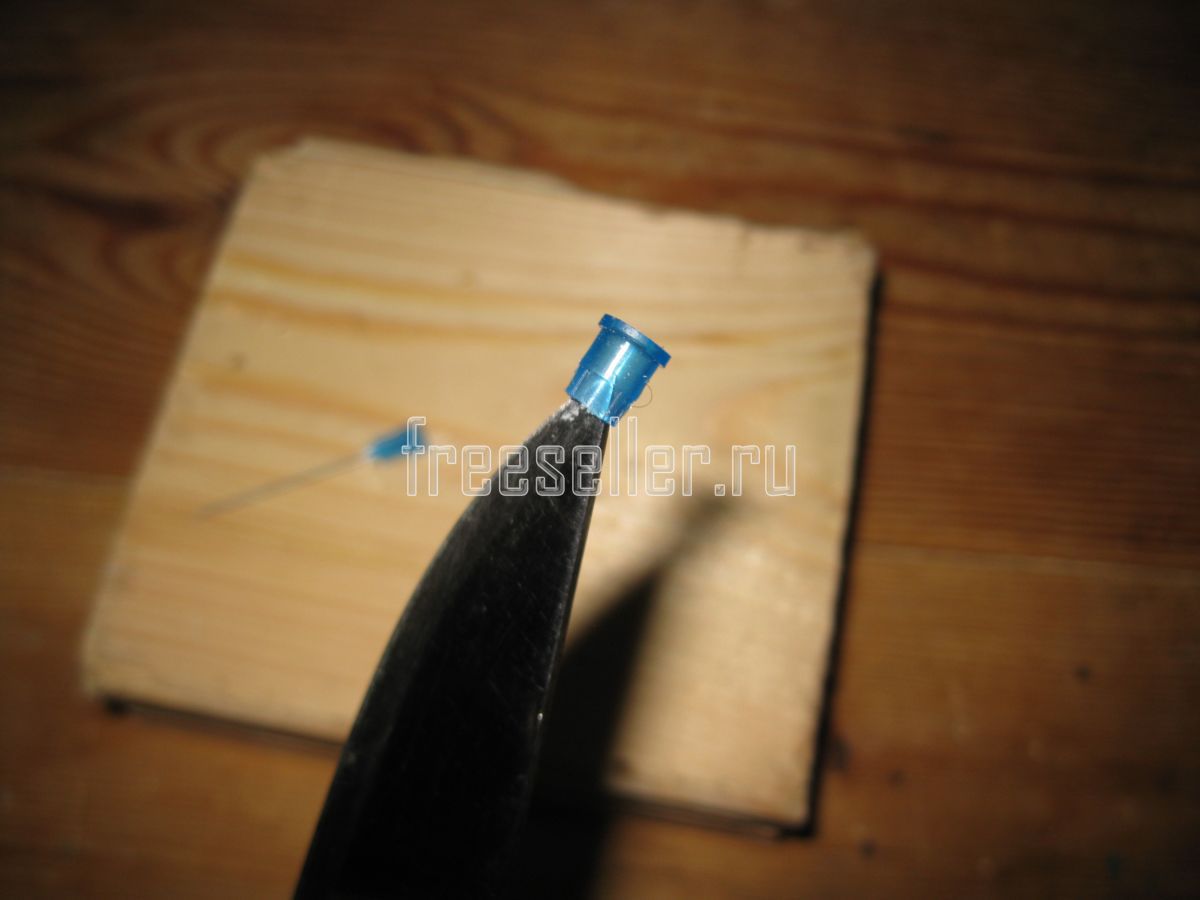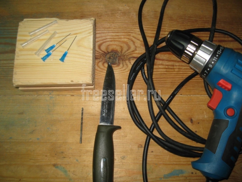 Таким образом, из материалов мне потребовались колпачки и иглы от одноразовых шприцов, а из инструментов – электродрель, шило, острый нож и сверло по металлу диаметром 2,5 мм.