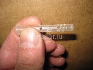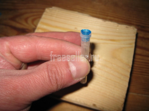 Для этого аккуратно вставляем в наши приспособления-колпачки, пластиковые шприцы из которых удалены поршни.