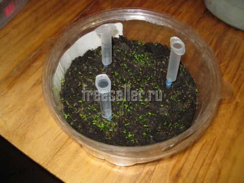 Как оказалось, такой способ полива очень эффективен и главное, что он совсем безопасен в плане повреждения самой мелкой рассады и семян. Поэтому я, наверное, сделаю еще с десяток таких колпачков для других емкостей с рассадой.