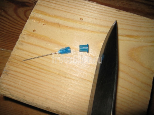 После этого ножом разрезал пластиковые основания игл вот таким образом.