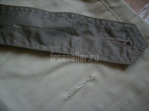 Наша штанина лопнула на самом видном месте - на колене. С узкими брюками из тонкой ткани это случается. Зашить такую прореху невозможно. Будем ставить заплатку. Она незаметной тоже не получится, значит нарочно сделаем её заметнее. Ремешок на колене точно бросится в глаза! Смастерим его из погона старого плаща контрастного цвета. В работе используем швейные принадлежности.