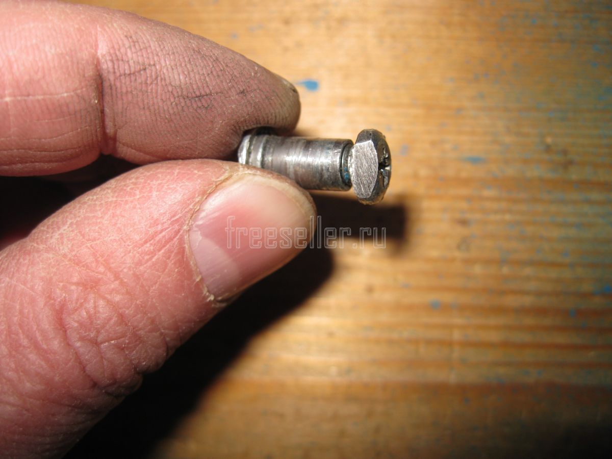 А затем, зажав эту втулку в пассатижах, обточил головку винта с двух сторон на точильном круге.