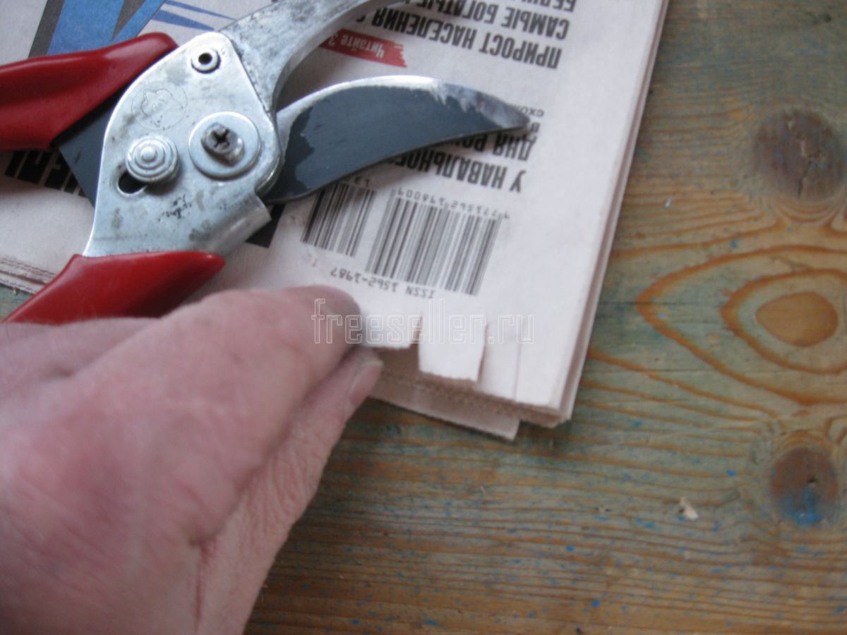 Для начала я попробовал резать картон и бумагу. Секатор справился с этим отлично.