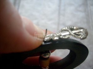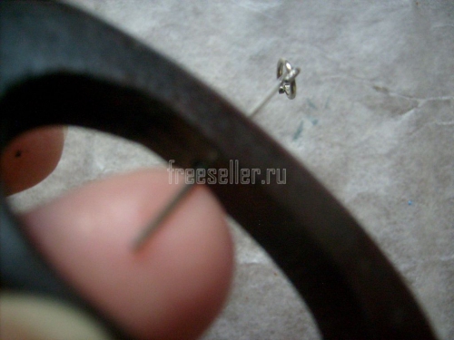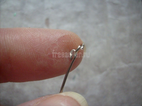 1. Отламываем шляпку гвоздика. Сгибаем его верхушку в петлю. Надеваем колечко, зажимаем петлю.