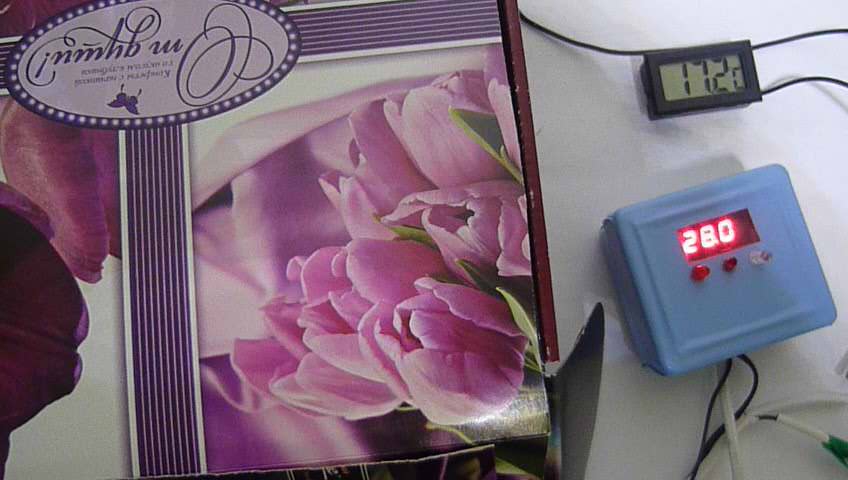 Для этого нужно создать оптимальные стабильные условия -влажность и температуру. Как ускорить прорастание семян. Данное приспособление использовалось для выращивания рассады огурцов. Для этого нужна картонная коробка, пластиковая упаковка для продуктов, лампа на 220 вольт на 20вт, диод, терморегулятор W1209, алюминиевая фольга. Регулятор настраивается на поддержание температуры 26-28 градусов.Сделать эту тепличку можно за полчаса. Диод включается последовательно с лампой для снижения напряжения на ней.