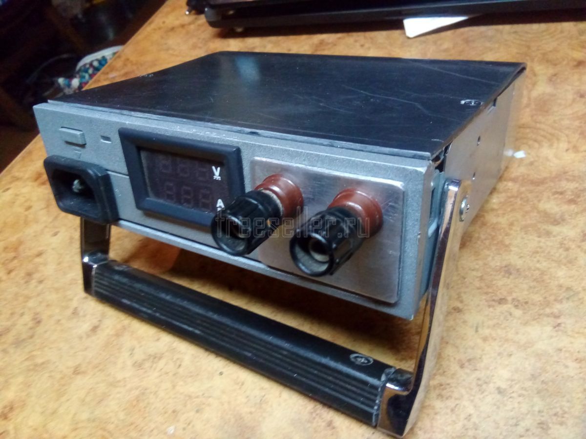 В блоке питания используется плата от старого компьютерного БП,китайский вольтамперметр и корпус от привода CD-rom.