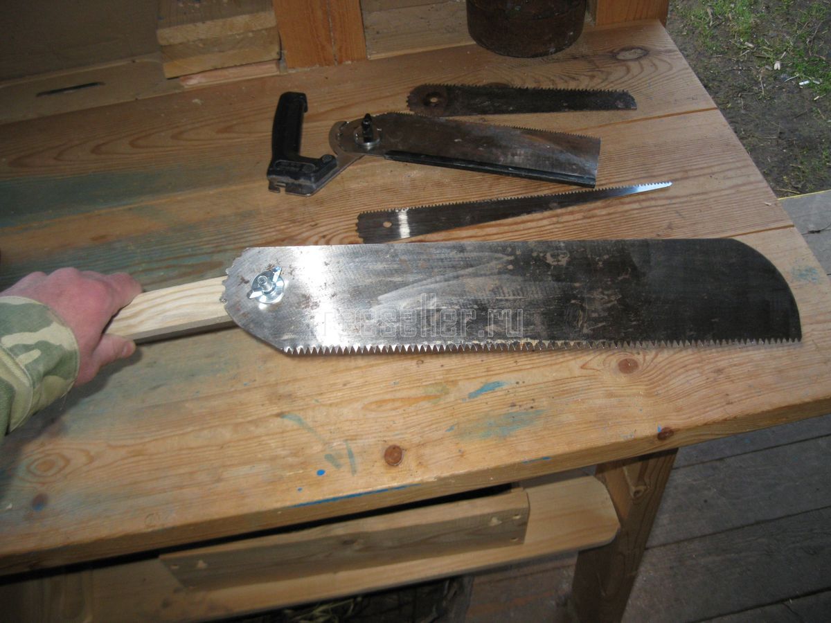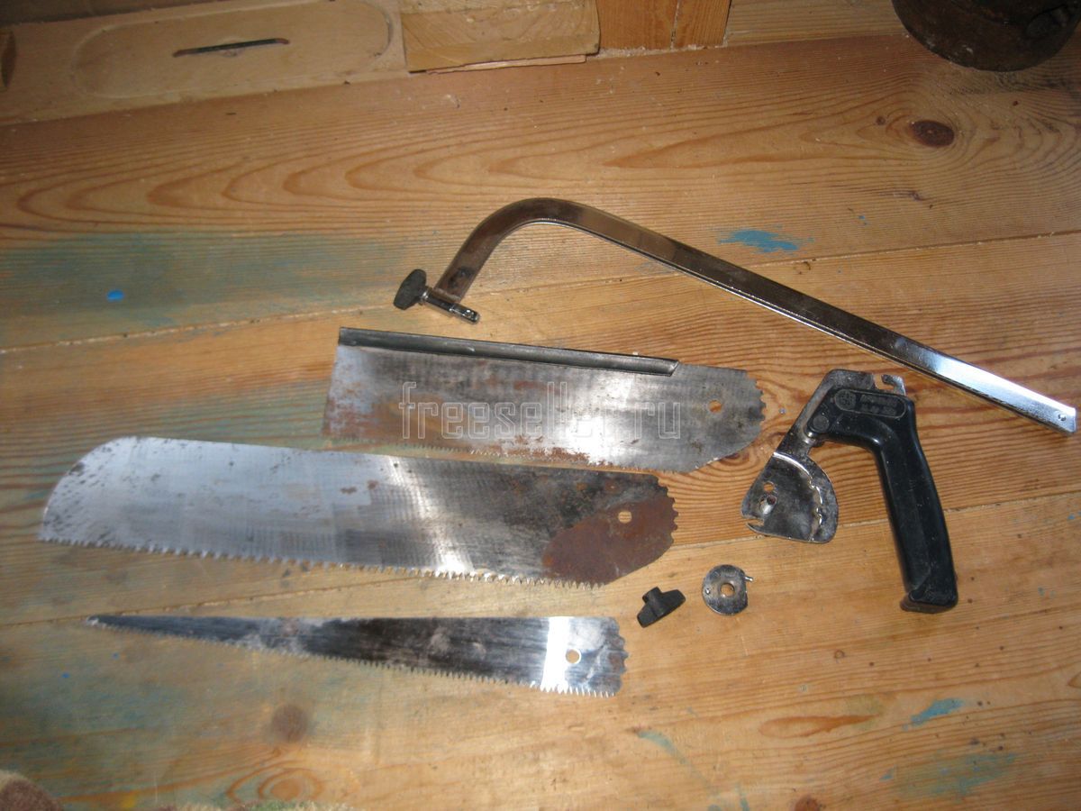 Надо сказать, что у меня имеется вот такая универсальная разборная пила (купленная, кстати, еще в советское время) с рукояткой и крепящимися к ней различными полотнами.