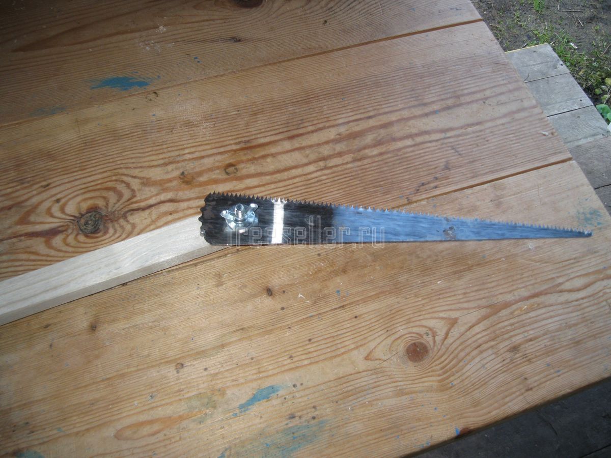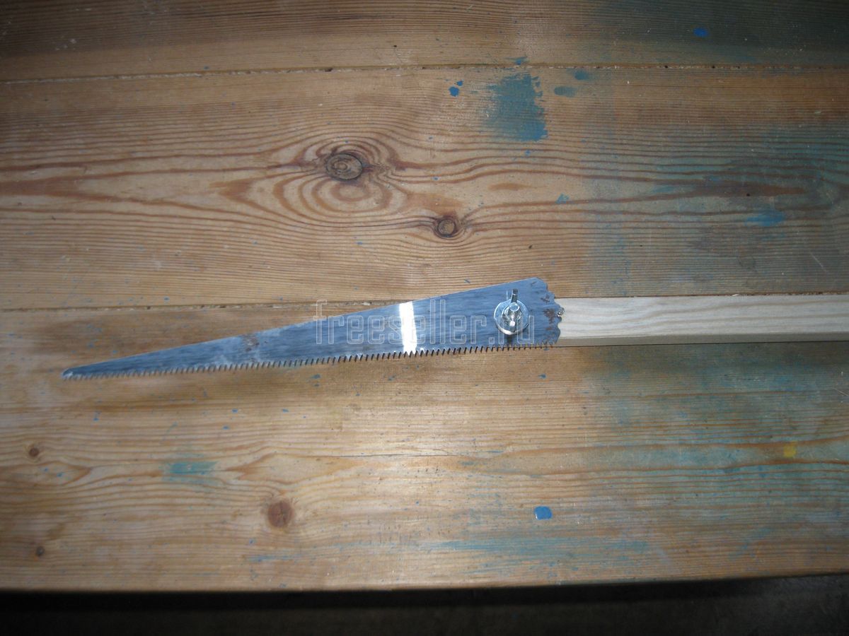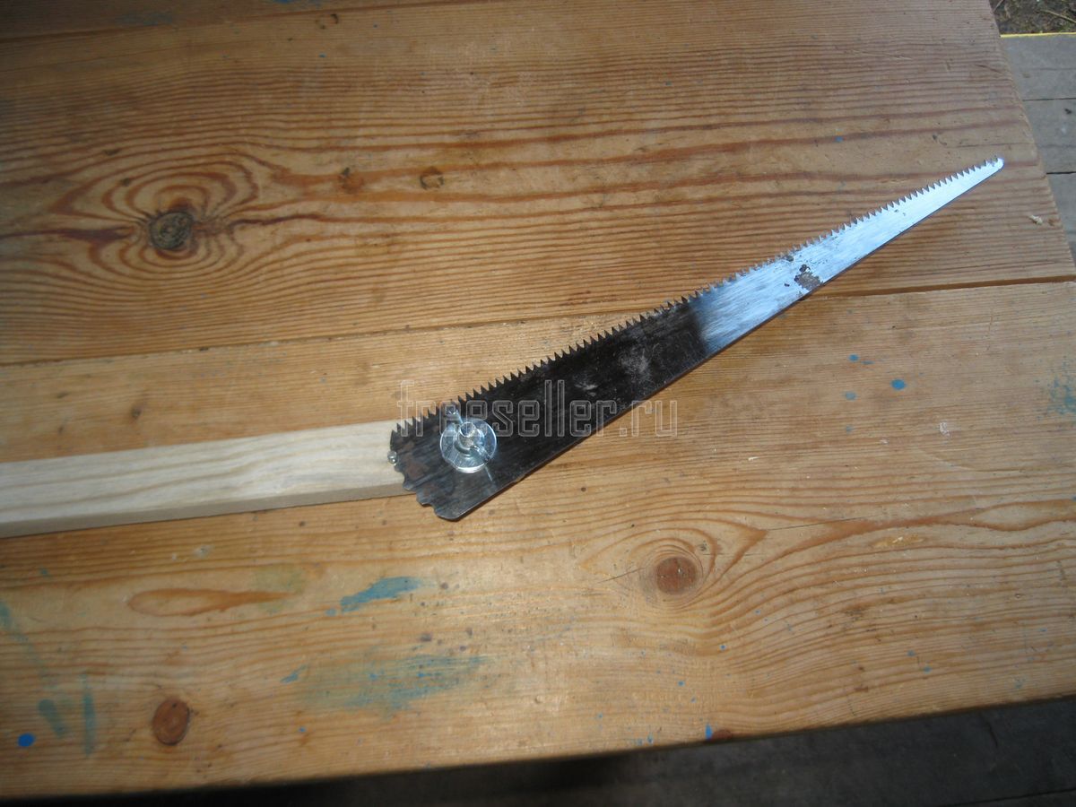 Однако подобные приспособления, которые продаются сейчас в специальных магазинах, стоят достаточно дорого. Поэтому я решил сделать собственный вариант штанги для крепления ножовки, а в качестве самой ножовки, использовать полотно от старой разборной пилы.