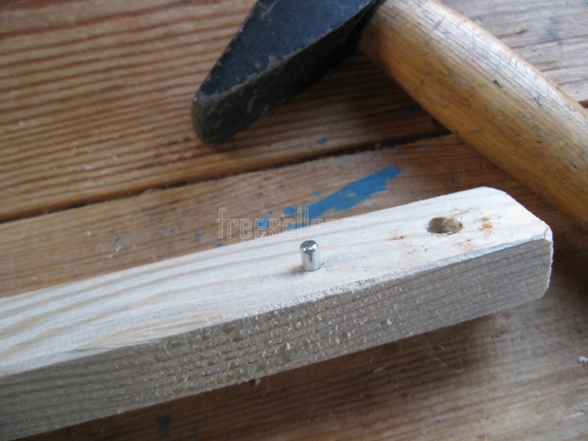 Далее откусываем кончик гвоздя, длиной на 3-4 мм, больше ширины деревянной рейки.
