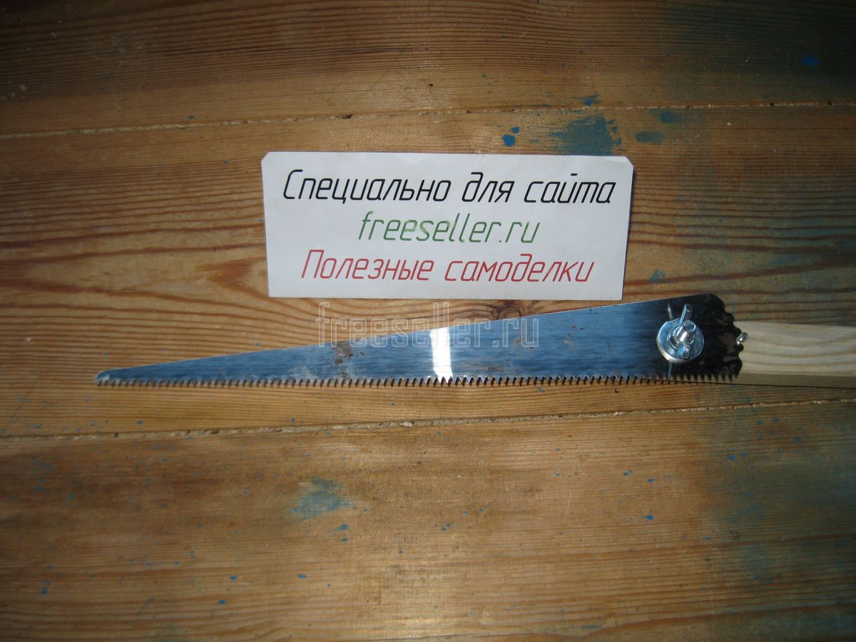 Кстати благодаря такой конструкции, угол наклона полотна относительно рукоятки пилы можно менять, что весьма удобно.