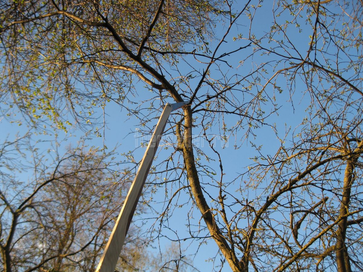 Для начала я отпилил несколько веток на старой липе в конце сада.