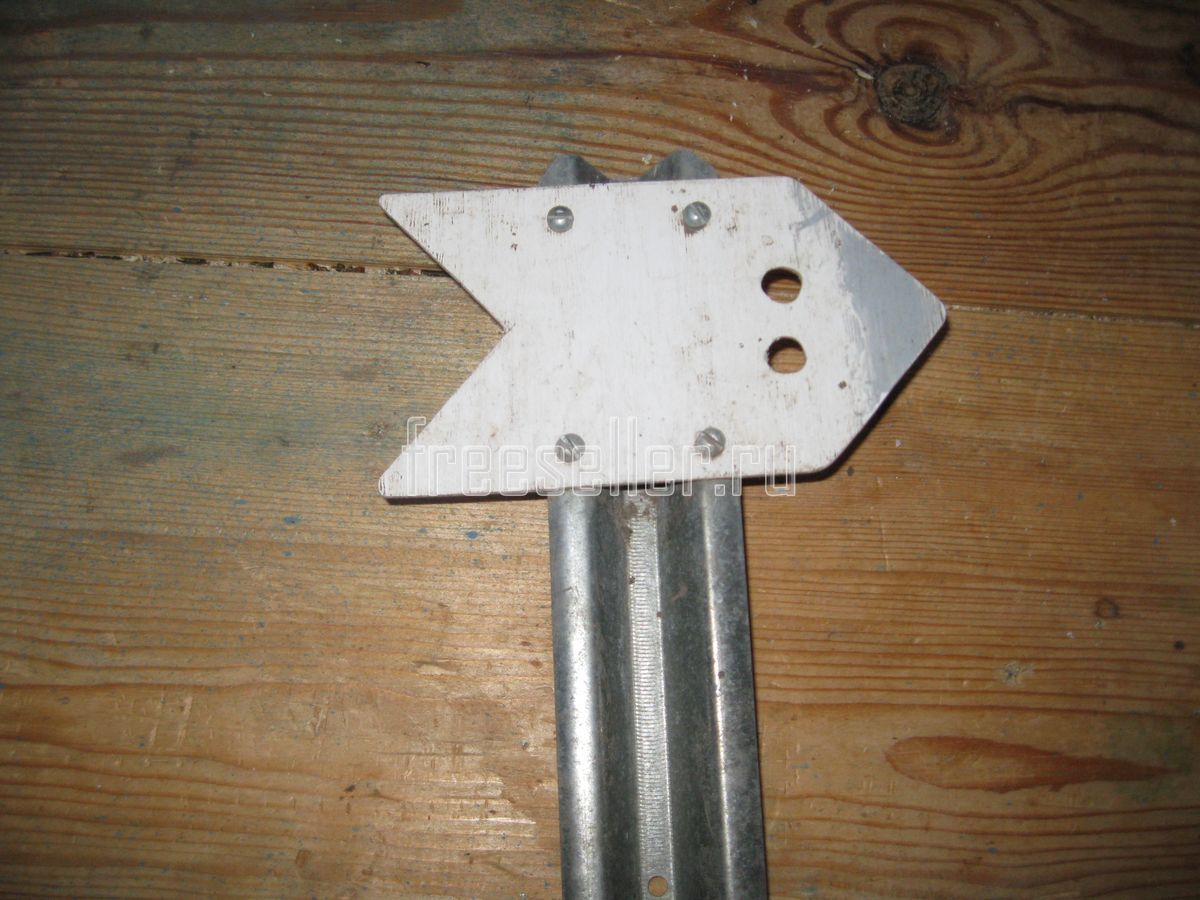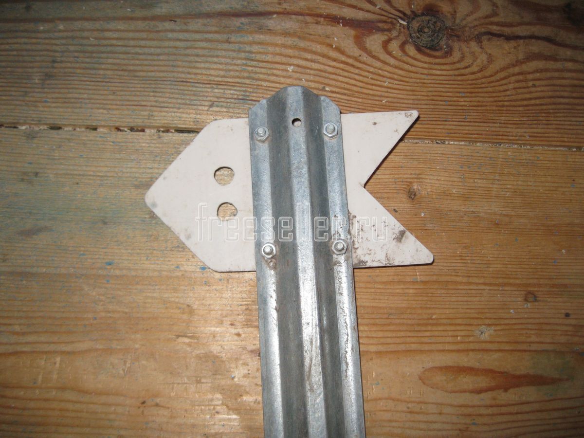 Для изготовления этого колышка из материалов мне понадобились: кусок ровного пластикового сайдинга, оцинкованная стальная стойка от старого парника, а также четыре болтика М4 с гайками.