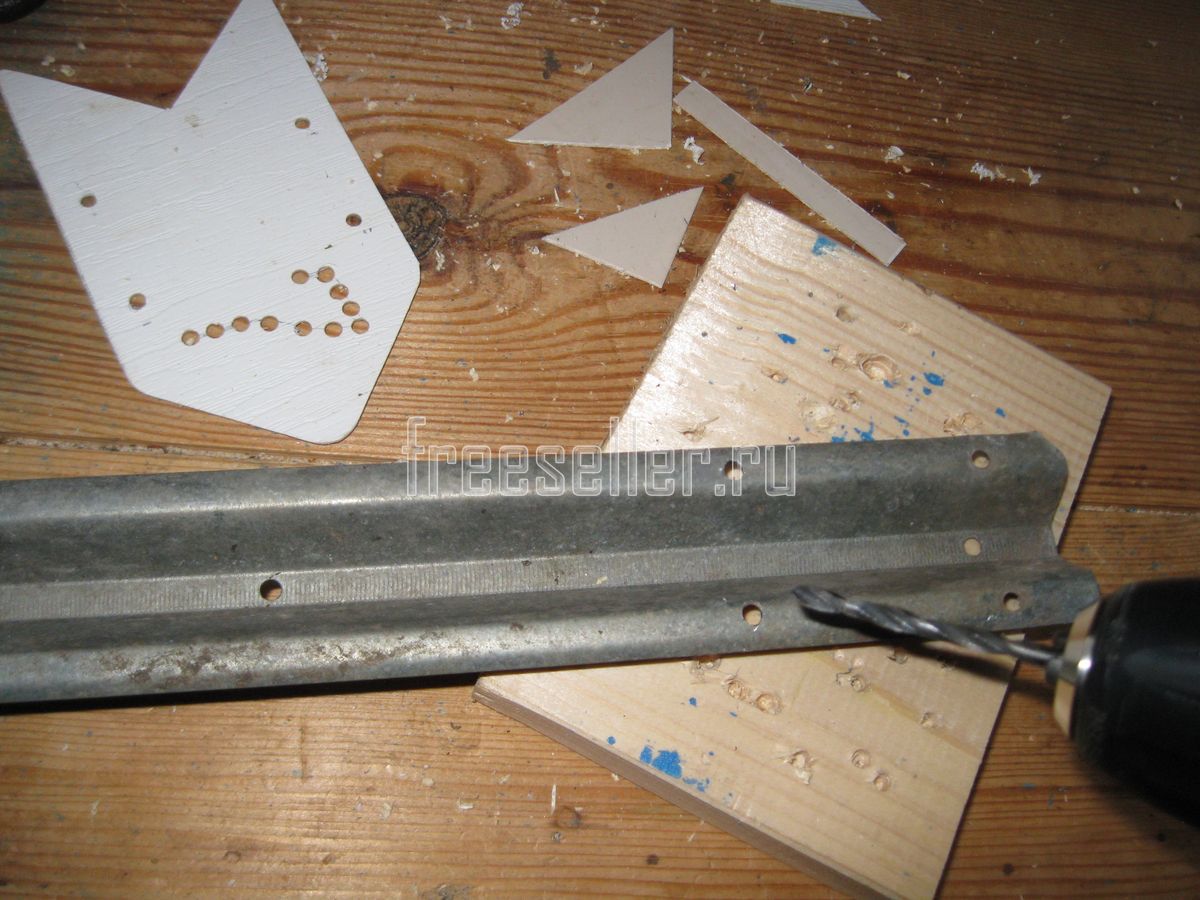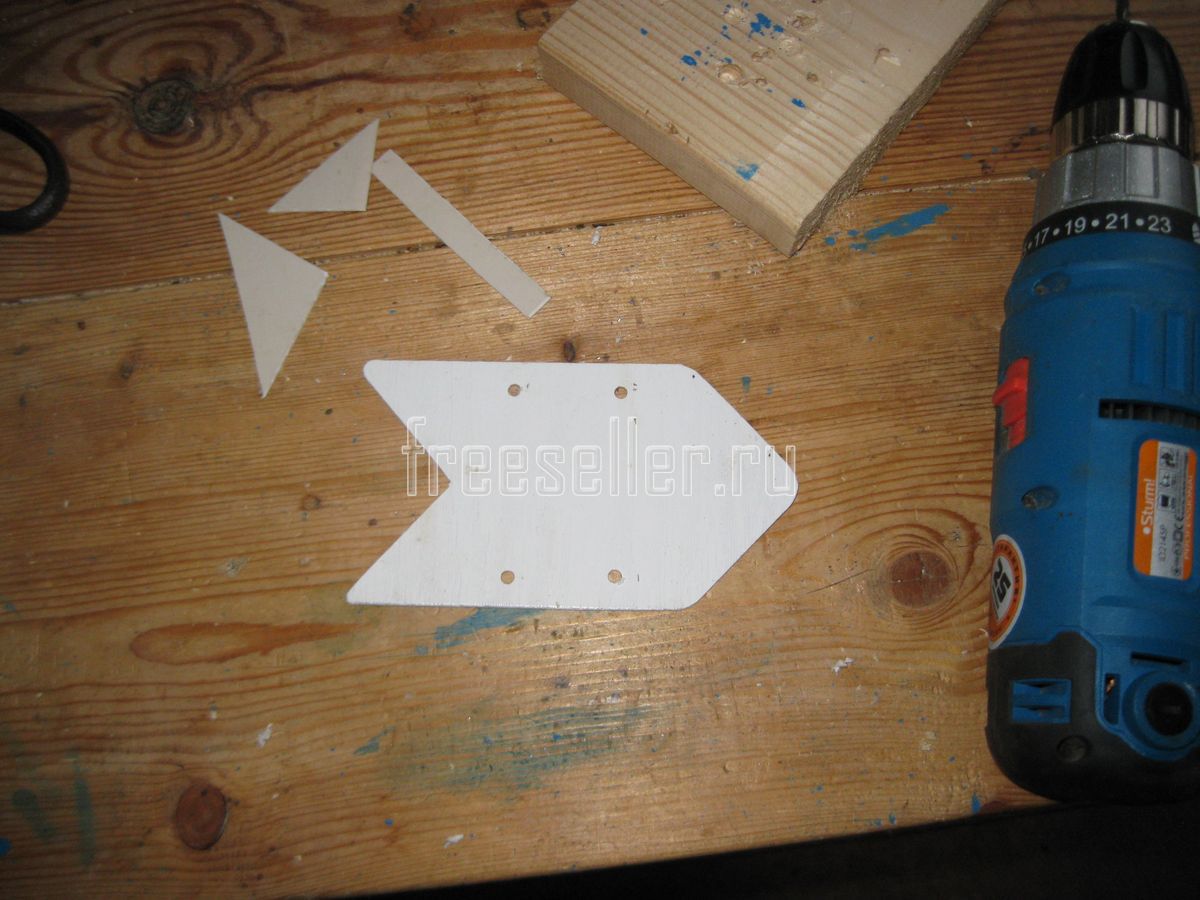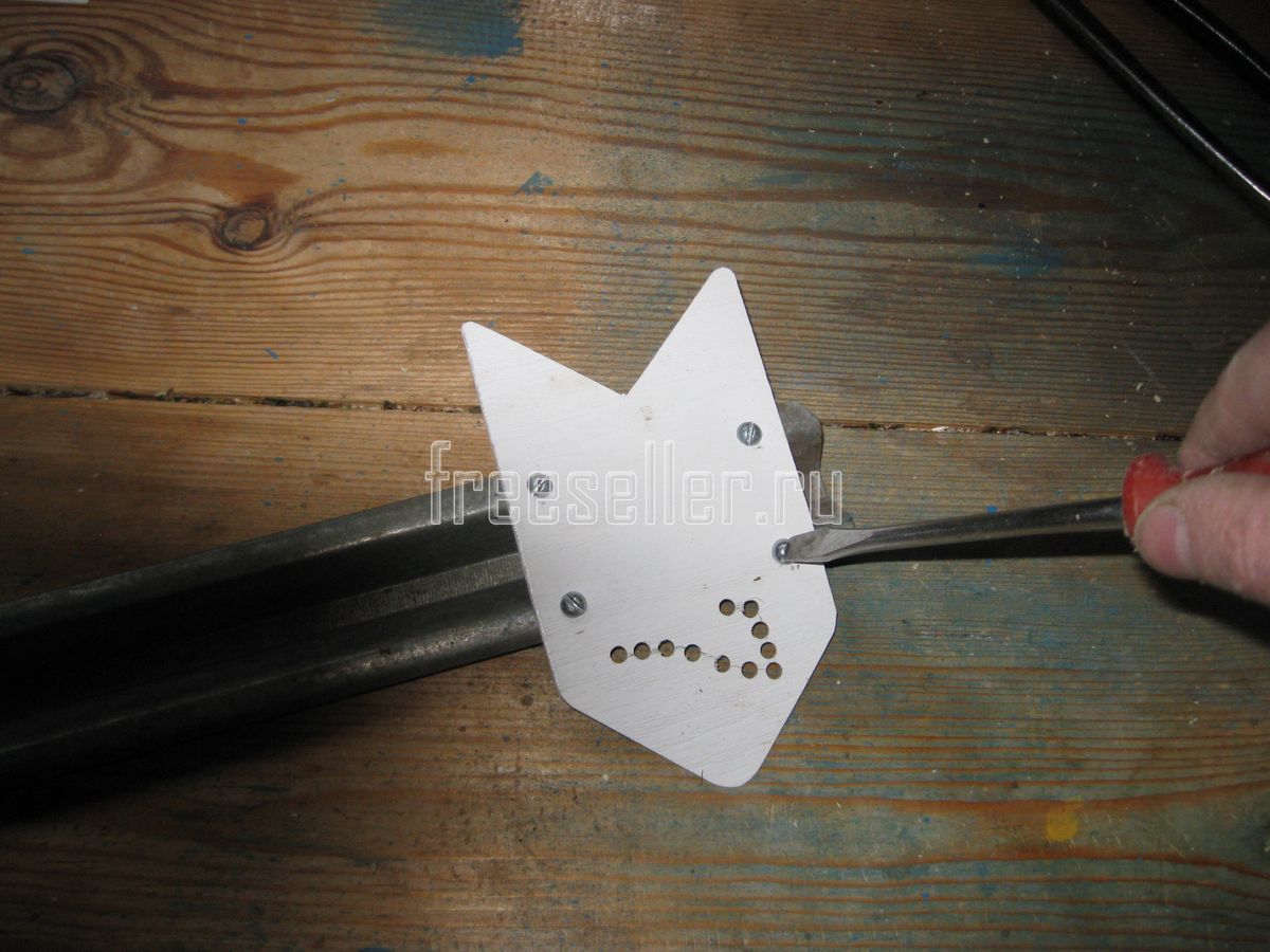 Просверливаем в указателе четыре отверстия сверлом диаметром 4 мм.