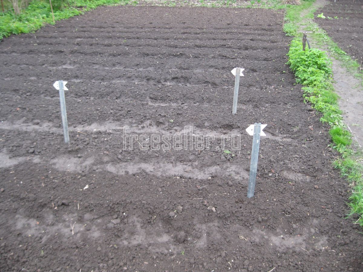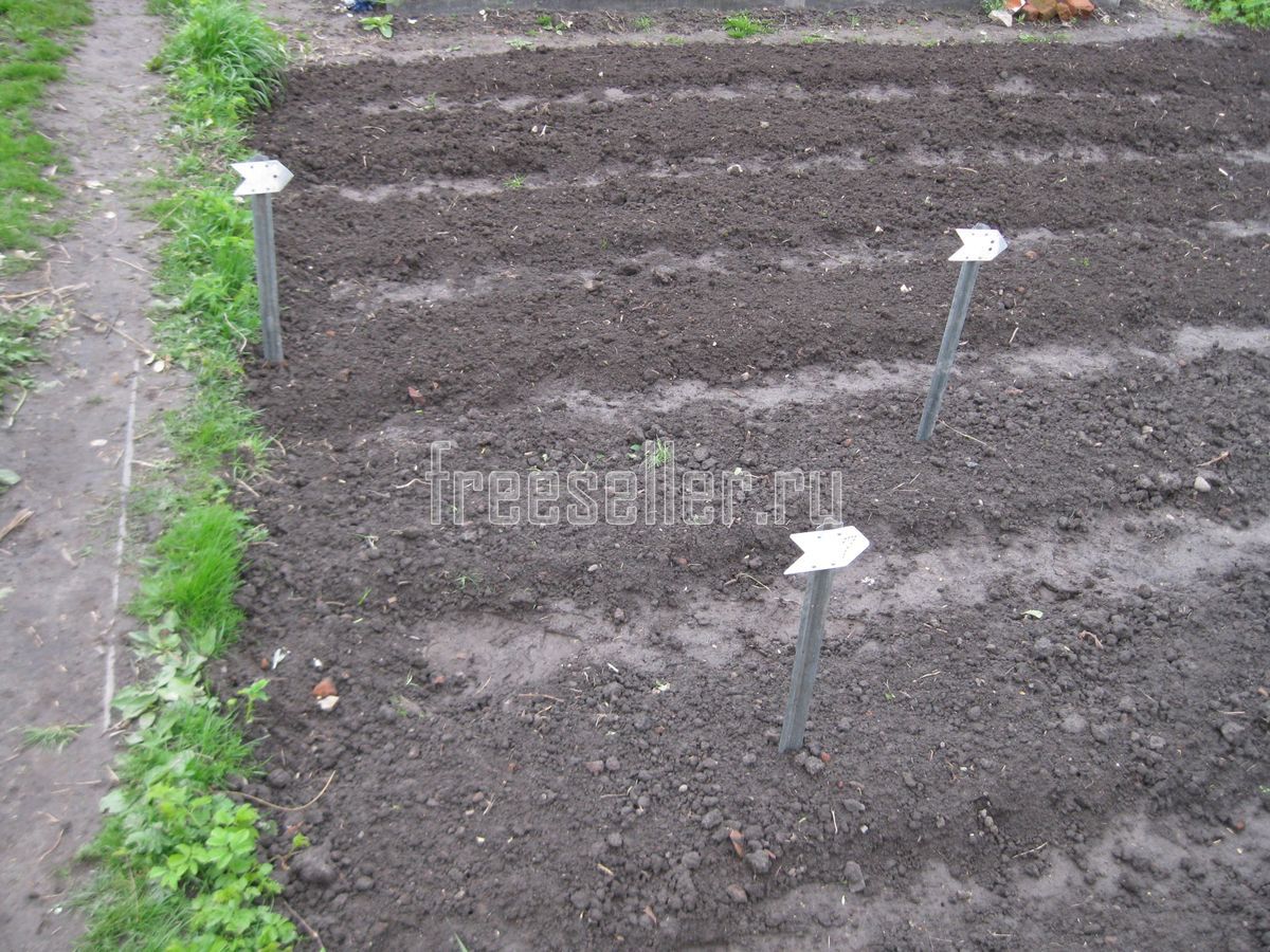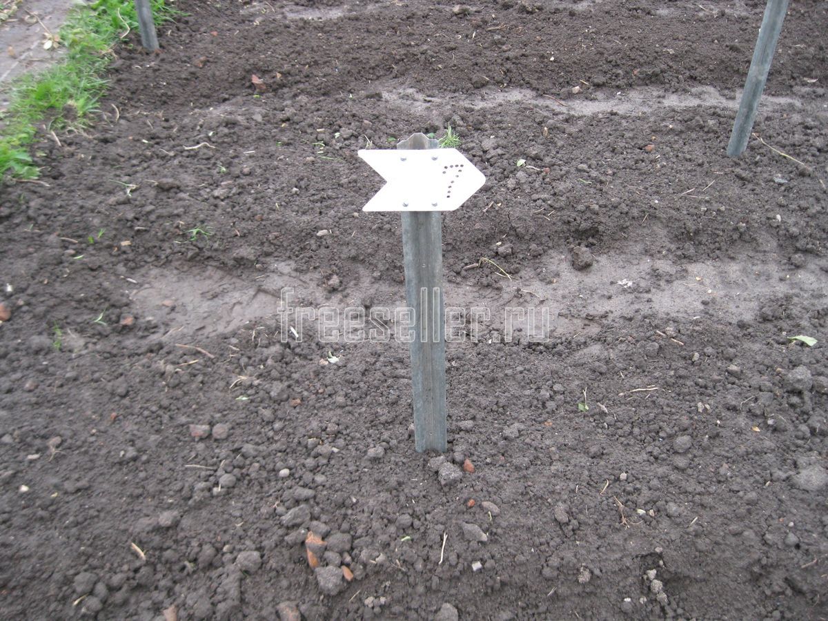 Причем особенно удобно применять такие колышки с указателями при посадках множества одинаковых растений, но разных сортов. Так, например, если приходится сажать несколько грядок картофеля, то очень часто бывает, что картофель одного сорта заканчивается прямо посередине грядки, а затем идет уже другой сорт. Поэтому если поставить просто колышек без указателя, то потом, при уборке картофеля, может быть уже непонятно в каком направлении на грядке идут посадки данного сорта.