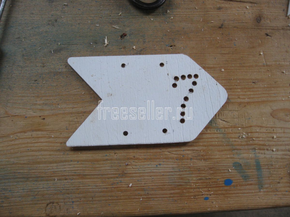 Теперь осталось только просверлить в колышке четыре отверстия диаметром 4 мм, под болтики М4.