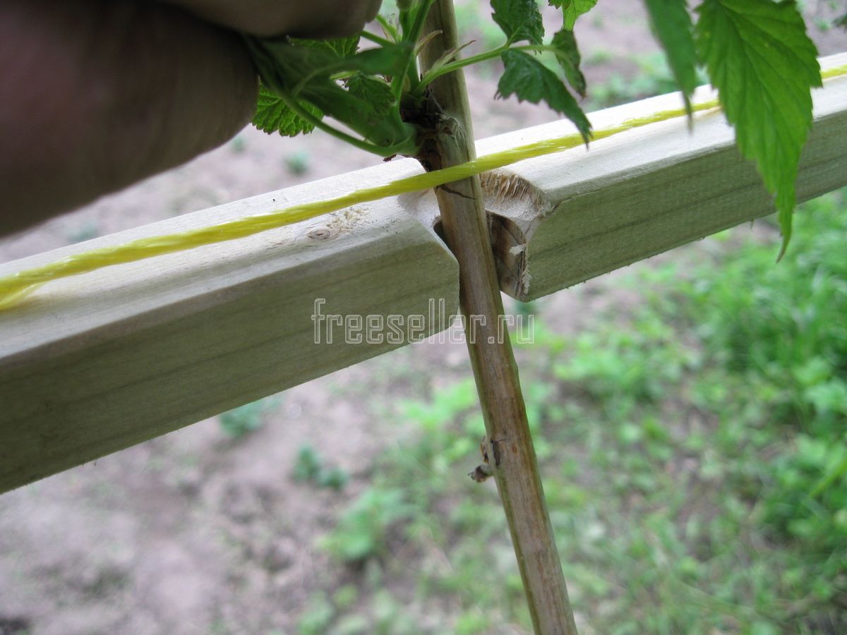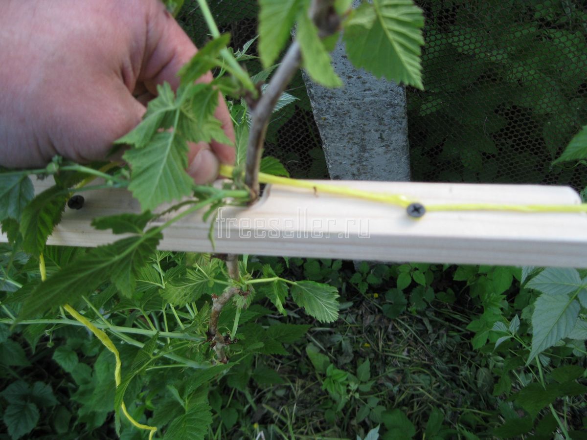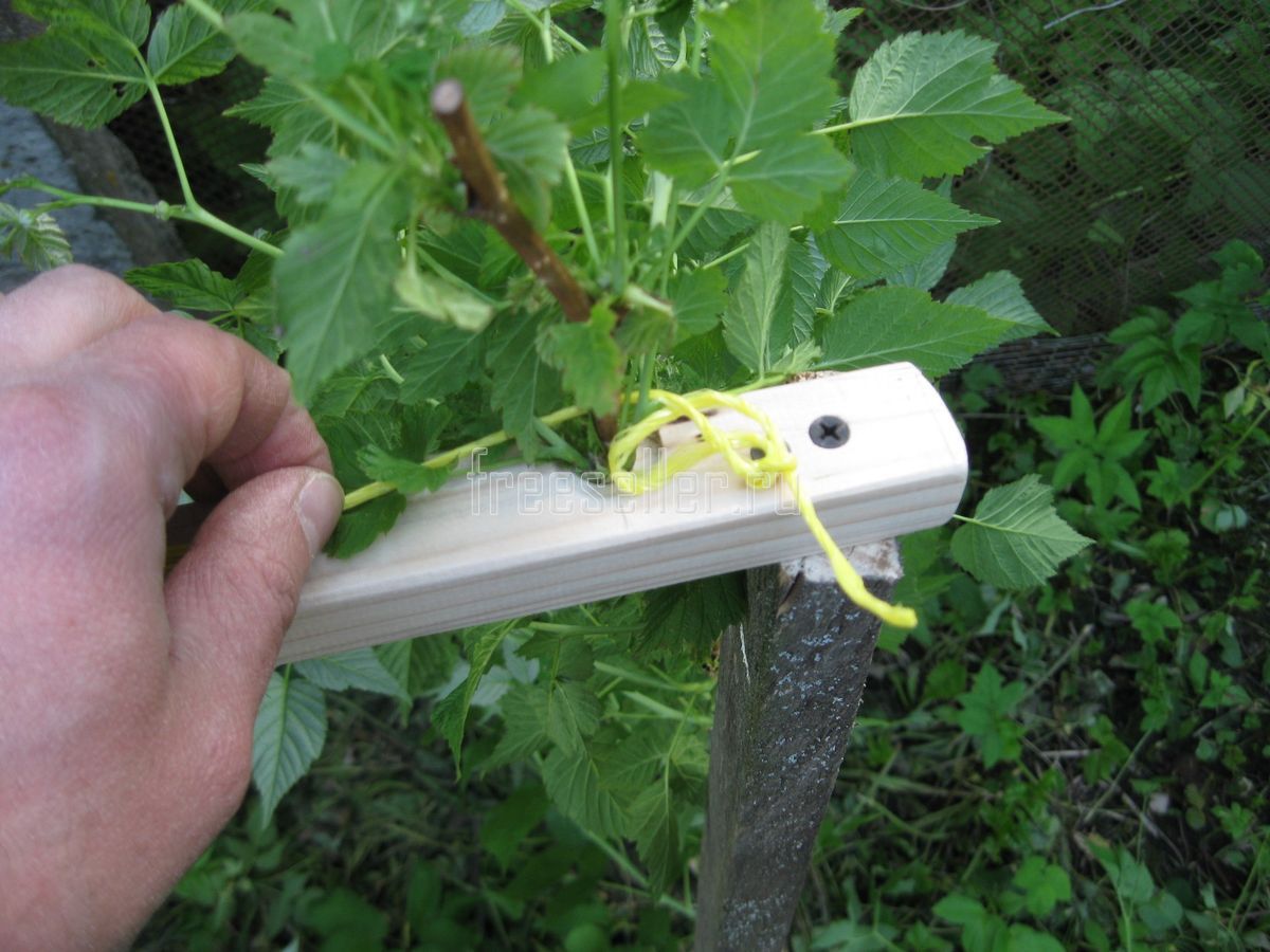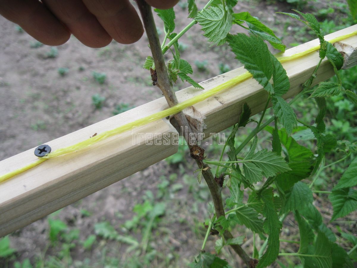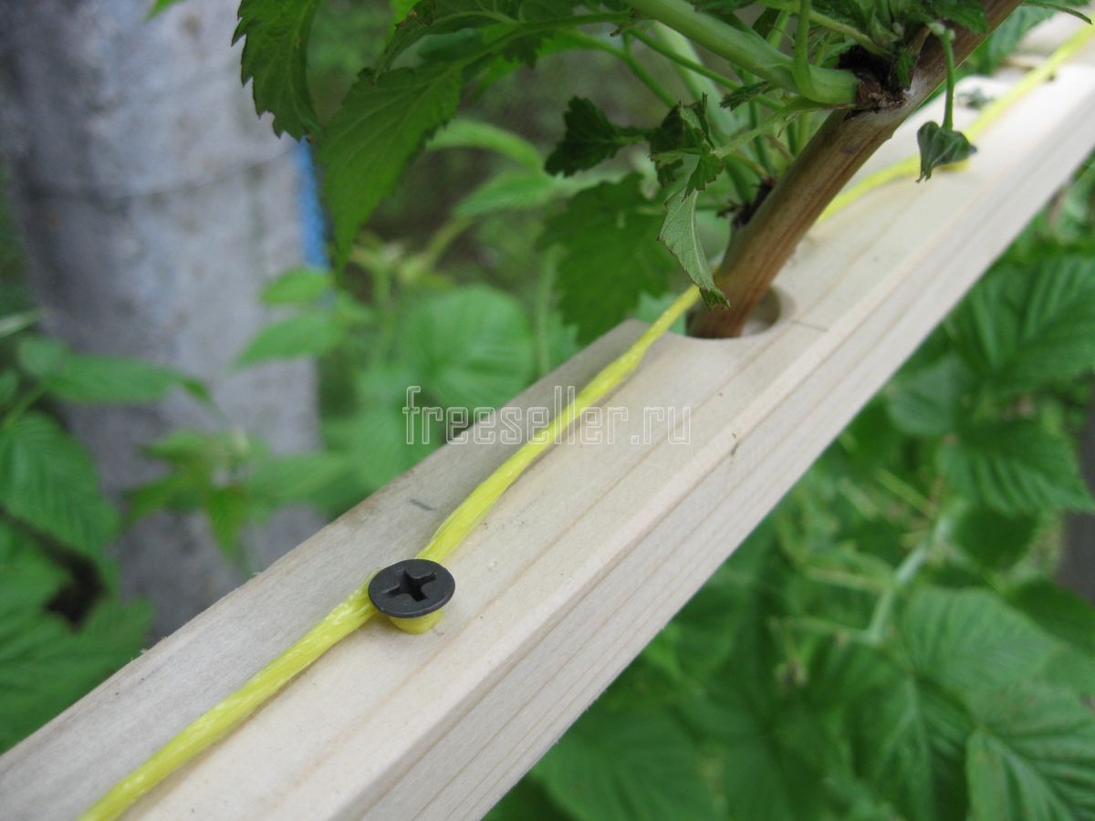 Таким образом, каждый стебель малины, прижатый шпагатом, уже не выскользнет из своей выемки.