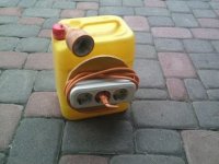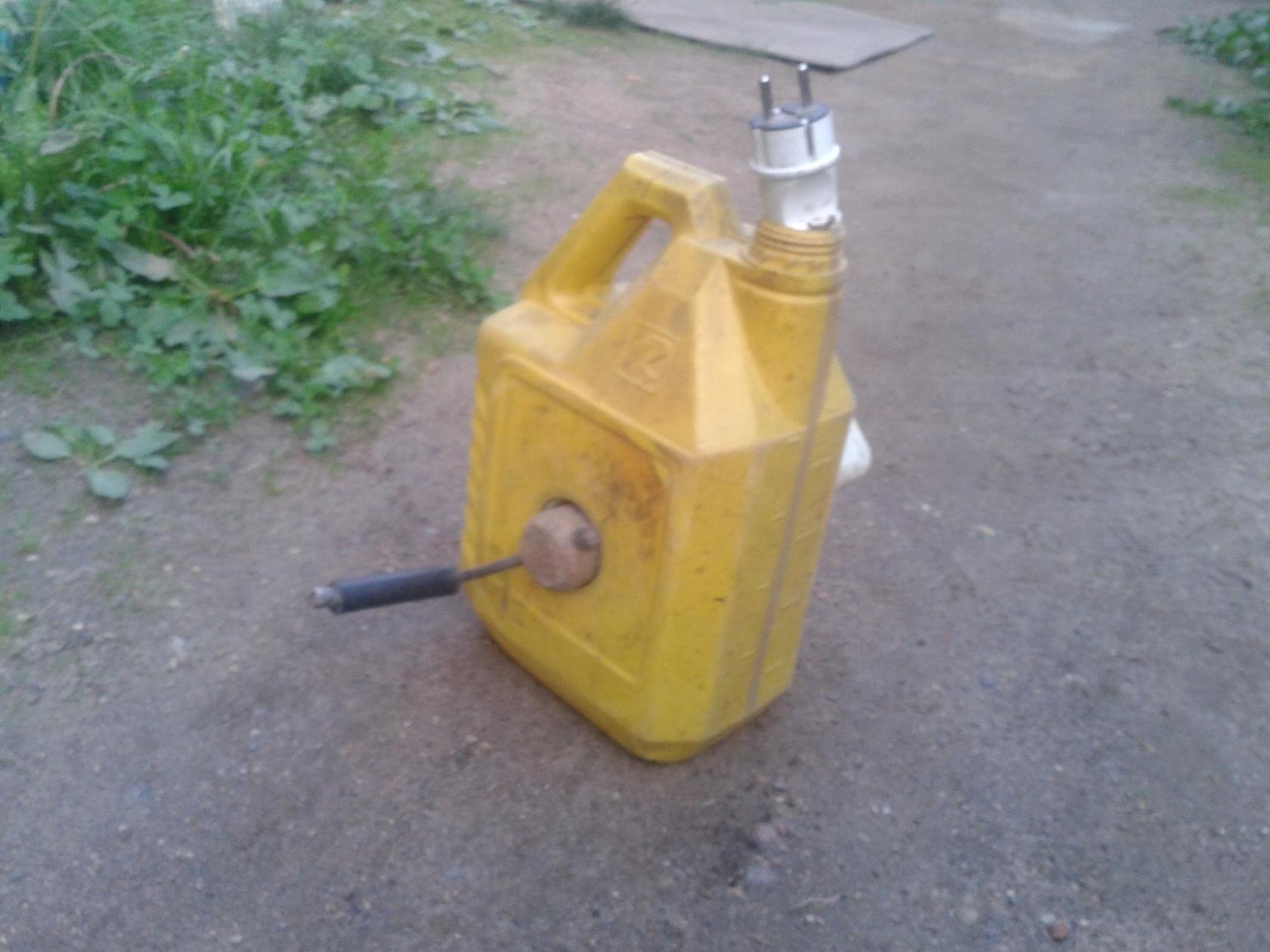 Для этого использовал подручные материалы: пластиковую канистру, черенок от лопаты и старый удлинитель.