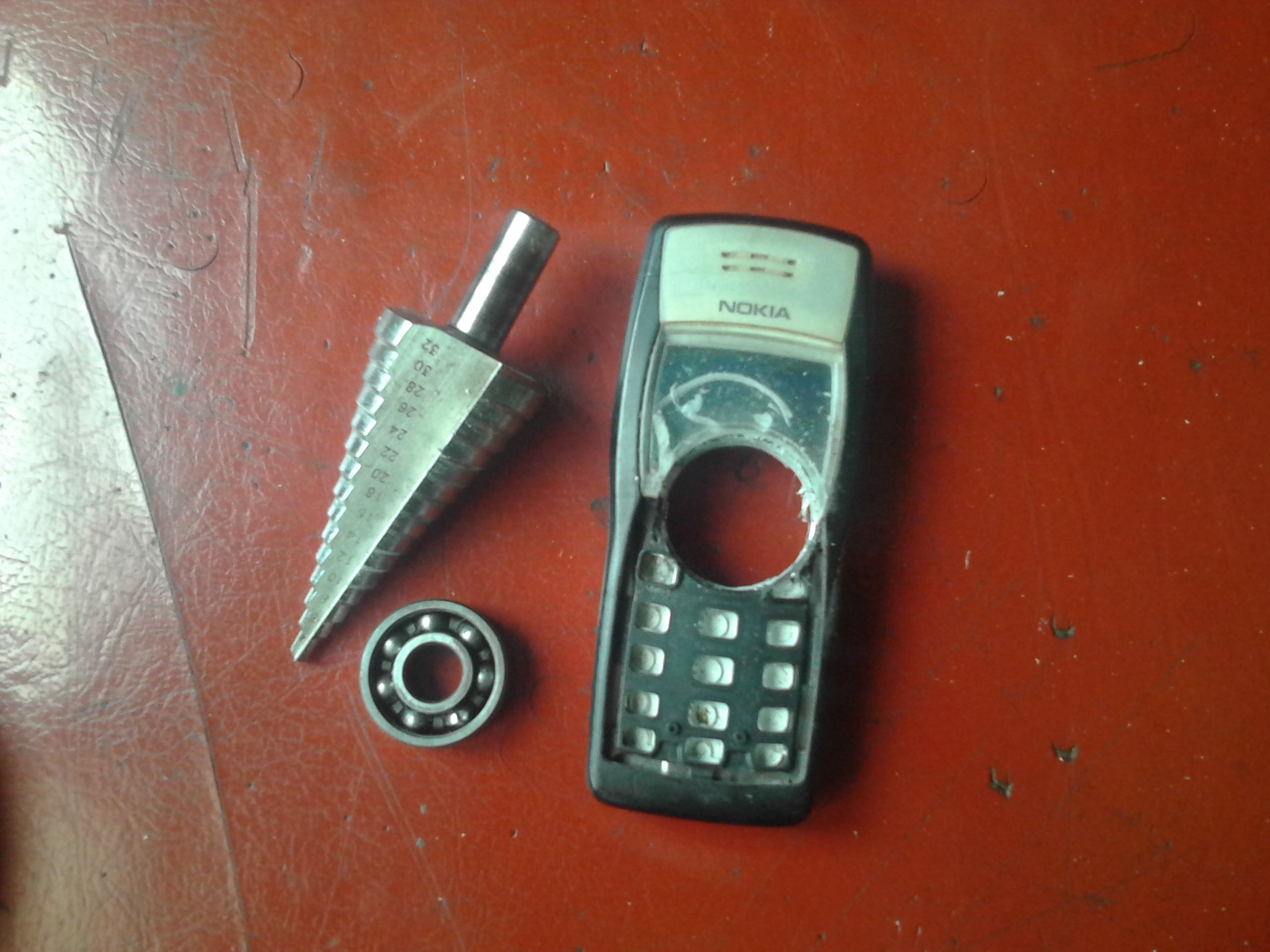 Сверлим по центру телефона отверстие, вставляем подшипник, заливаем клеем.