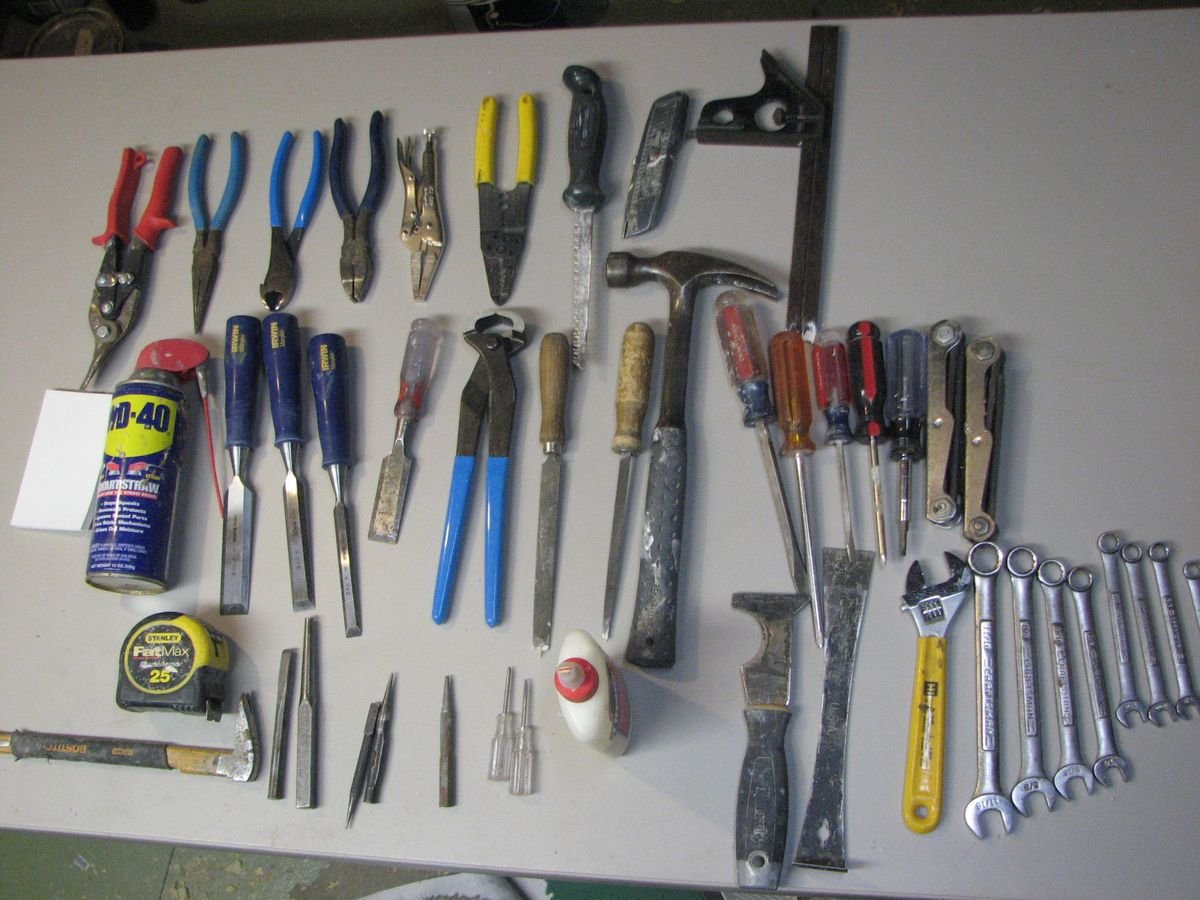 Самодельный ящик с уложенным в него инструментом.