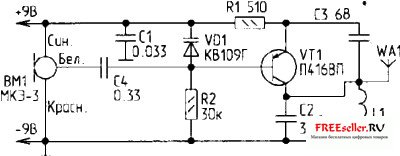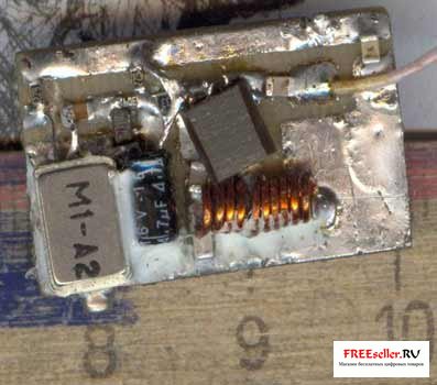 Самодельный жучок собранный по схеме должен получиться очень маленьким, если Вы хотите сделать его еще меньше используйте более маленький микрофон, но из-за размеров батарейки типа: "Крона" его размер сильно таки и не уменьшишь.