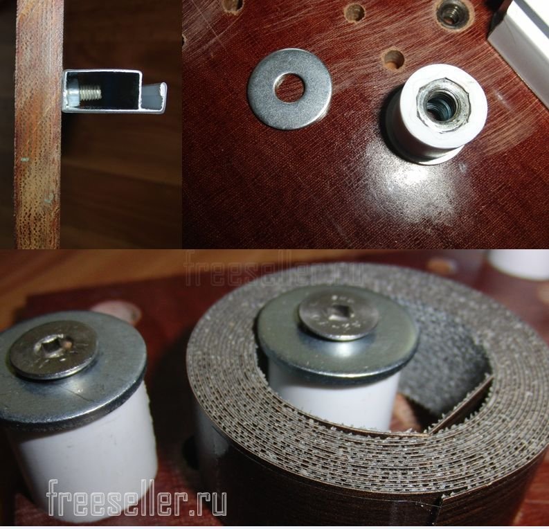 Внутри с обеих сторон были впаяны гайки на 8 мм, а сверху всё крепится увеличенной шайбой с потайным болтом на 6 мм. Болты сильно не затягивал для свободного вращения роликов.