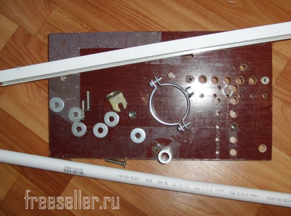 Основой станка послужила моя универсальная платформа, которую я делал для моей старой самоделки - Стойка для бормашинки. Также мне понадобились: полипропиленовая труба, хомут для канализационных труб на 50мм и алюминиевый профиль от москитной сетки.