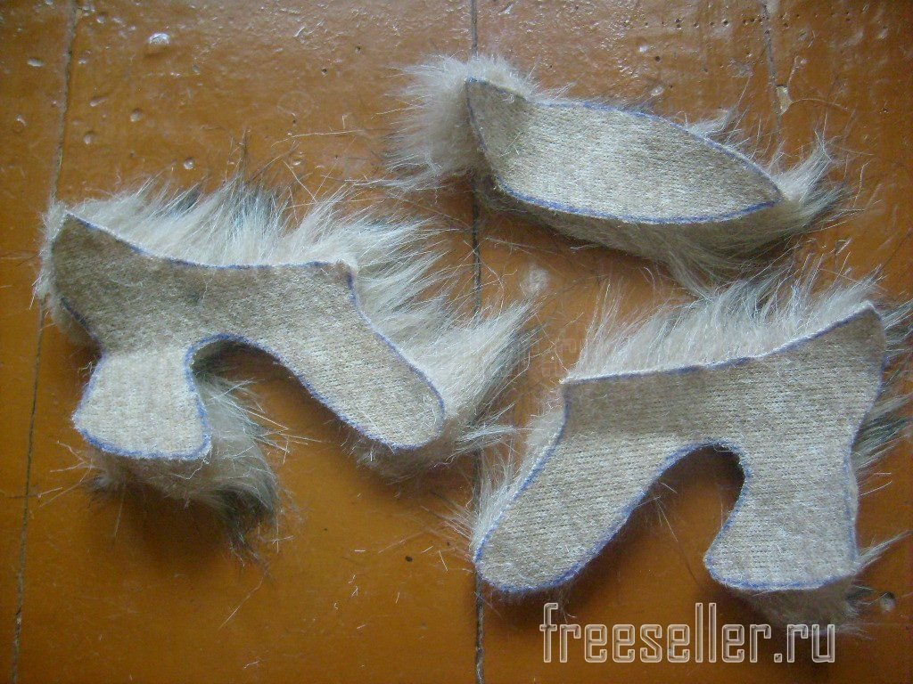 2. Из тёмного меха выкраиваем 4 детали туловища с головой.