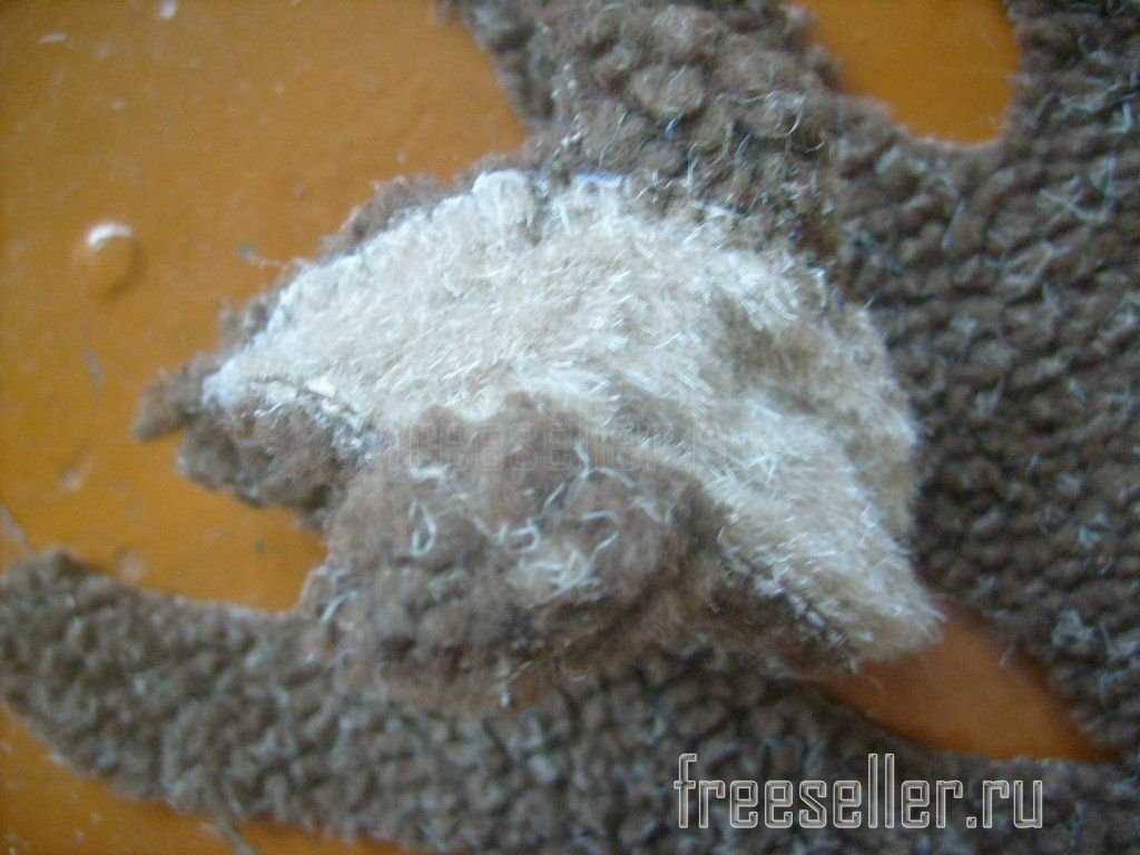1. Обводим на изнанке светлого меха 4 детали брюшка и 2 детали средней части головы.