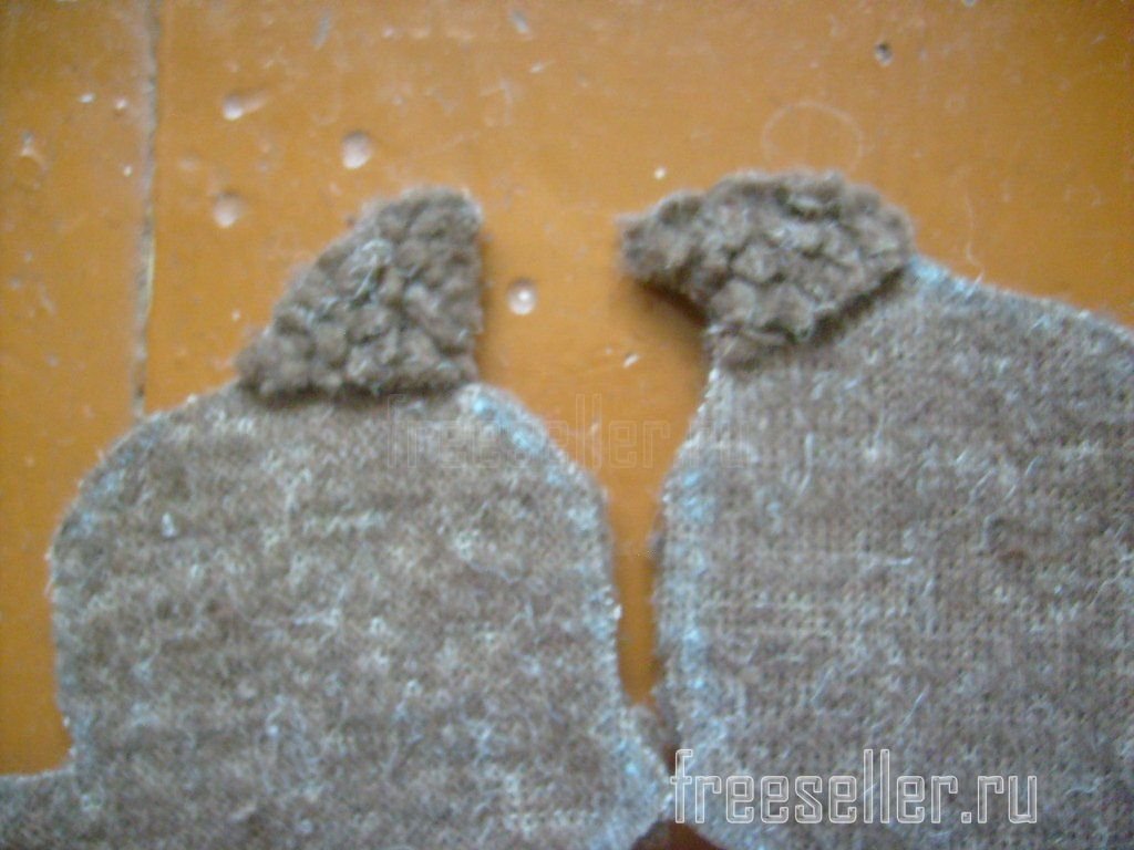 3. Складываем ушки попарно с головой изнанкой внутрь. Сшиваем их декоративным швом.
