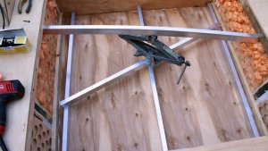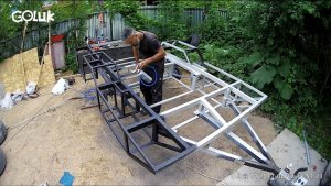 Чтобы сместить центр тяжести, пол будущего дома опущен ниже основного профиля рамы, а по бокам добавлены рундуки. За счет опускания пола ниже высота прицепа при условии, что в нем можно будет стоять в рост, тоже будет не такая высокая. Высота в салоне будет 180-200см. все будет зависеть от высоты. Задача уложится в 230см., чтобы прицеп не сильно выступал за тягачом (20-30см. не критично).
