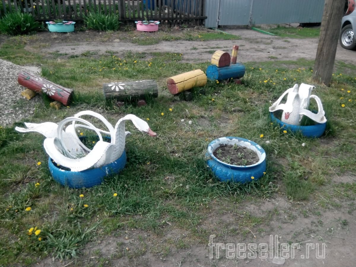 Лебеди из покрышек своими руками, для украшения дворовой площадки.