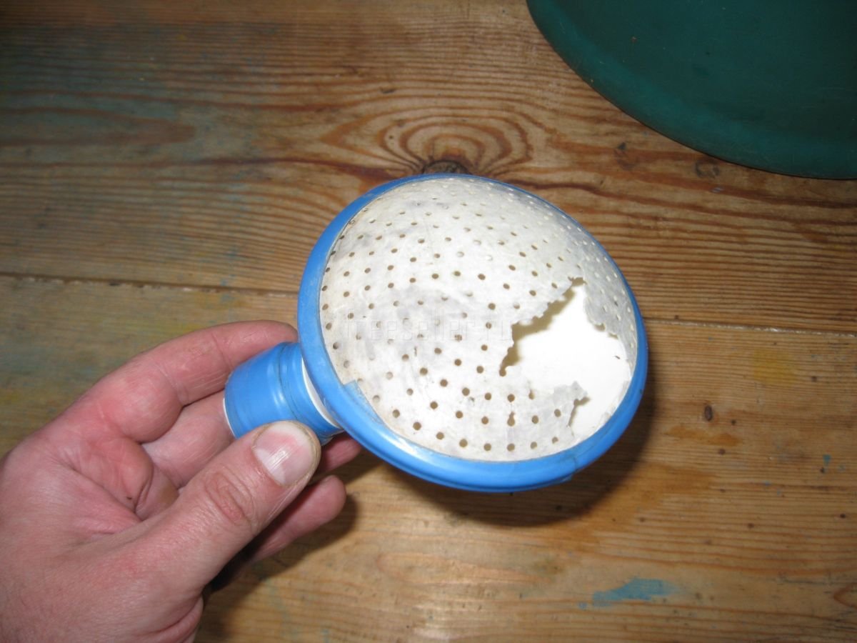 Поэтому пришлось опять браться за поливаны и лейки и поливать огородные грядки. И тут в самый разгар поливочных работ, у нас полностью сломалась покупная насадка-лейка для пластмассового поливана. Надо сказать, она и с самого начала была довольно хлипкой, и ее еще раньше пришлось перемотать изолентой. Но тут у нее вообще отломился целый кусок, и она стала полностью непригодной для полива.