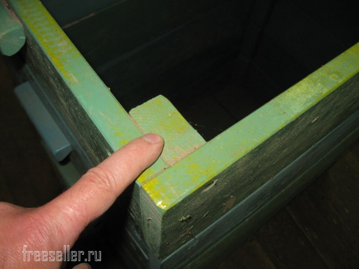 К ним при помощи шурупов прикручиваются стенки секции. Кроме того верхние части брусков выступают вверх на 2 см, для того, чтобы на них надевалась и фиксировалась другая секция.