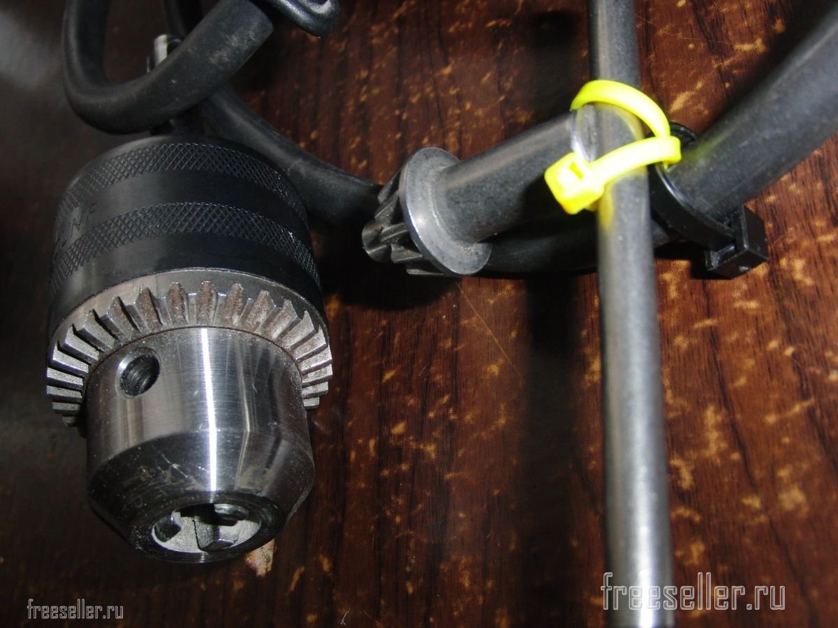 Ключ не потеряется, благодаря двум хомутам, крепящим его к шнуру дрели.