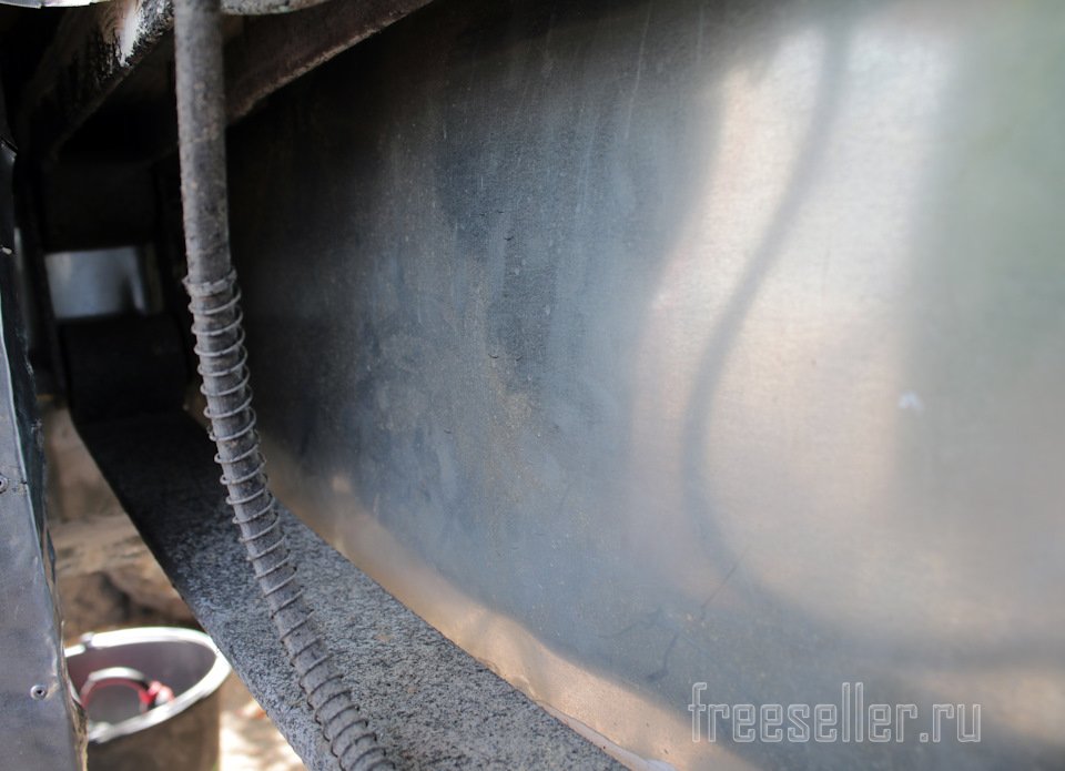 Затем к фанере 15мм, снизу я приклеил на тот же SoudaFlex оцинкованный лист 0,4мм. Чтобы лист не провис, в двух местах выставил домкраты и опоры, на которых выставил 2м. алюминиевый профиль, чтоб охват площади был не точечный.
